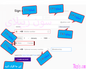 خوب برای ساخت ایمیل یاهو این صفحه را من شماره گذاری کردم برای شما شرح میدم.